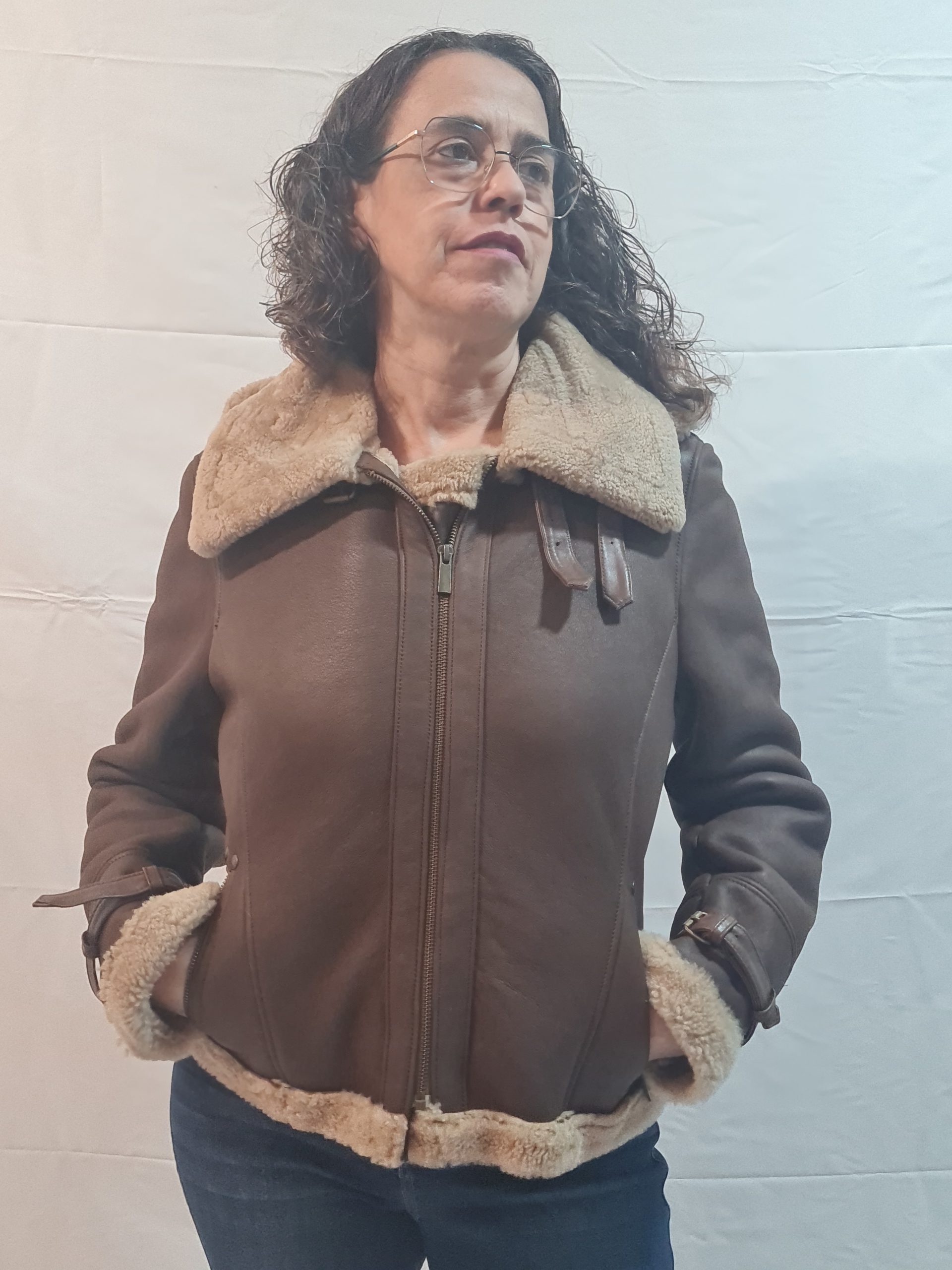 Cazadora de piel de cordero. La capucha se desmonta con una cremallera el cuello es grande y lleva unas tiras con hebillas para poder cerrarlo. Lleva dos bolsillos con cremallera y las mangas llevan unas tiras con hebillas. Actualmente esta prenda esta disponible en color avellana y talla 42 pero se puede hacer en todas las tallas, el color hay que consultar para saber la disponibilidad en ese momento. Para hacer la prenda a medida ponte en contacto con nosotros y te ayudaremos a tomar tus medidas desde casa.